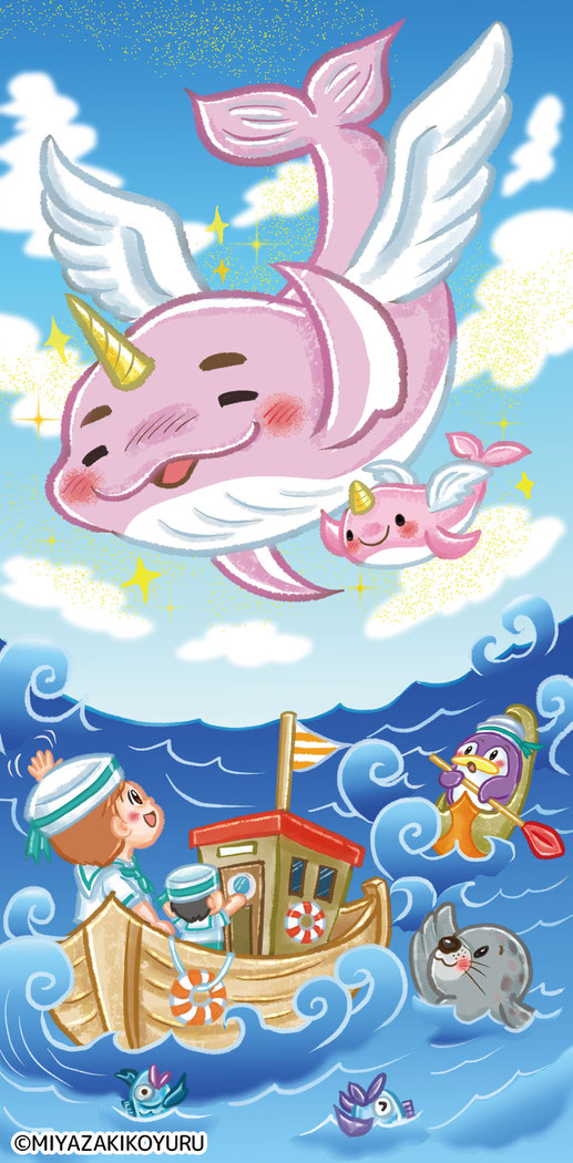 海の主がみんなの航海を見守っています!「でっかい!まちがいさがし9月号」コスミック出版にイラスト1点制作しました~クジラの海の守り神です!