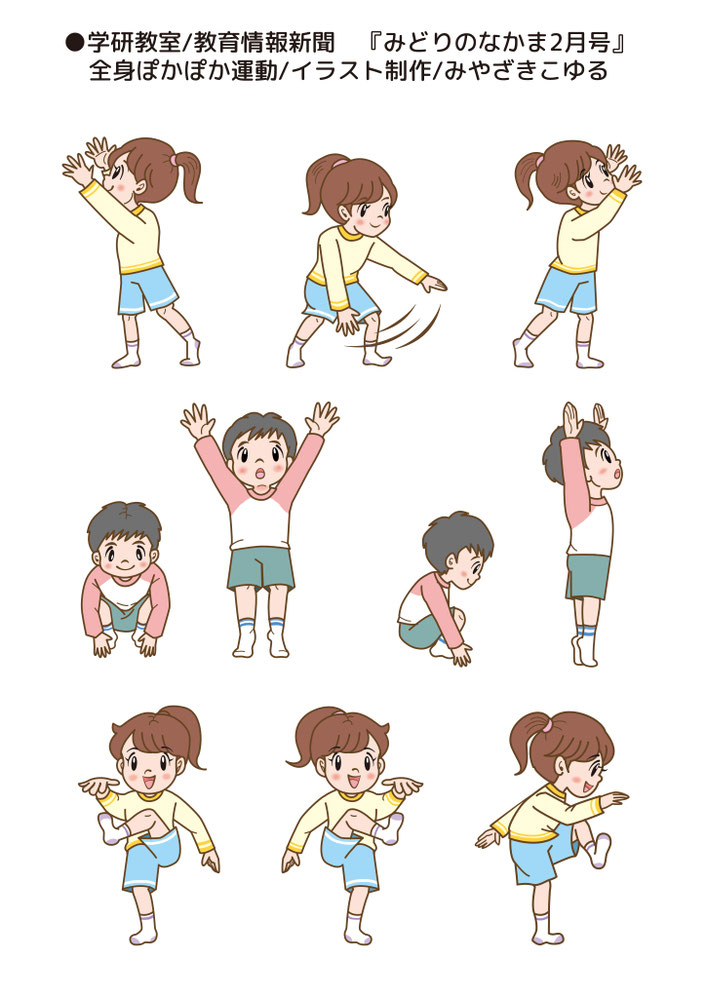 【お仕事報告】学研教育新聞/『みどりのなかま2月号』 (株)学研エデュケーショナルのぽかぽか運動のイラストを制作しました! 最近寒くてイヤですね~ぽかぽか運動であったまろう #イラスト #イラスト好きな人とつながりたい #学研教育新聞 #みどりのなかま #ぽかぽか運動 #絵本 #児童書